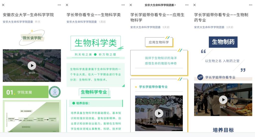 学院为适应后疫情时代的招生宣传特点,努力探索,逐渐形成“互联网+招生”的新型招生模式。今年已完成了“院长谈学院”、“学长带你看专业”等多条视频的拍摄和后期工作,引导广大考生关注安徽农业大学。学院的官方网站和新媒体平台也持续更新学院办学条件、学科建设、师资力量、专业介绍、毕业生就业情况等专题信息,引导广大考生全面正确的认识学院及各个本科专业。学院全体教职工在5月、6月的招生宣传期间充分利用自媒体积极宣传学校的招生政策,转发学校官微关于招生宣传的推送信息,发动身边人为招生宣传助力,形成了人人参与的良好氛围。