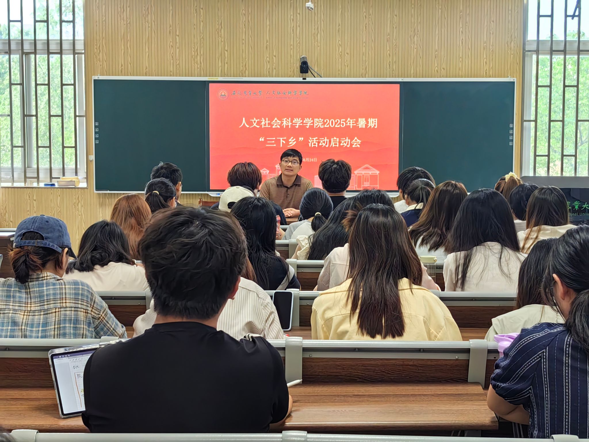活动伊始,孙辉作动员讲话,他指出,暑期“三下乡”社会实践是新时代青年成长成才的“必修课”,是将知识转化为能力、将理想付诸实践的重要平台。他对即将启程的同学们提出三点期望:一要提高认识,深刻领会“三下乡”社会实践活动的重要性,将个人成长与社会发展紧密结合,为乡村振兴贡献智慧和力量;二要严守纪律,筑牢底线思维,确保安全教育、保险购买、预案制定、过程管理、应急处置等落实落细;三要学以致用,厚植家国情怀,鼓励同学们要深入田间地头、基层一线,在实践中读懂国情省情,在实践中展现人文学子良好的精神风貌。