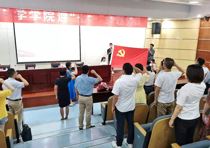 为进一步强化理想信念教育,全体党员师生在院长姜红的带领下,举行了新发展党员入党宣誓,老党员重温入党誓词的仪式。