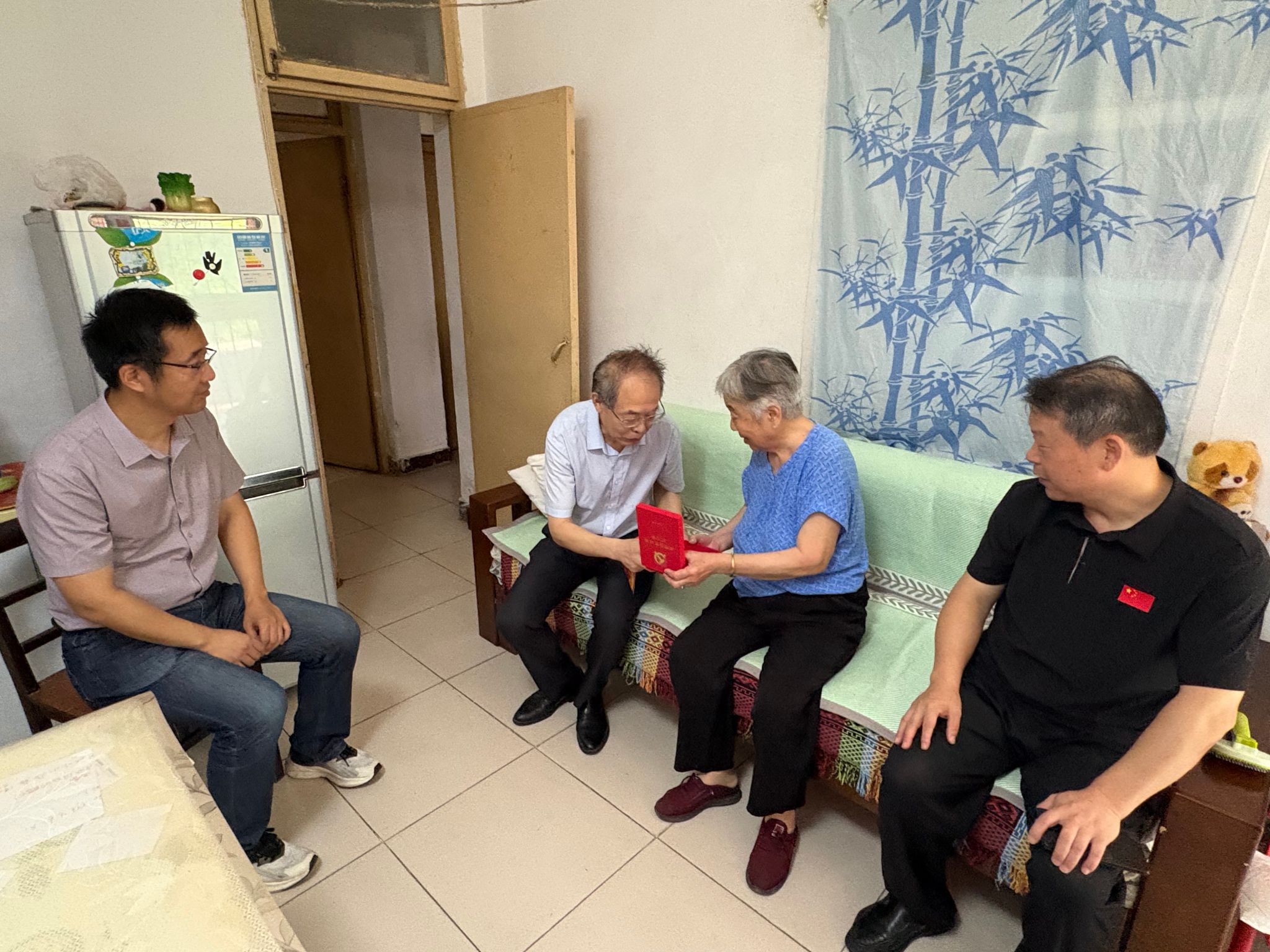 学院一行先后前往吕维英、沈健章等离退休老党员家中,详细了解他们的身体状况、生活需求及家庭情况,叮嘱他们注意保重身体,并代表学院感谢他们长期以来为党的教育事业和学院发展作出的贡献。慰问过程中,学院为老党员们送上鲜花、慰问金,并为吕维英老师颁发了“光荣在党50年”纪念章。