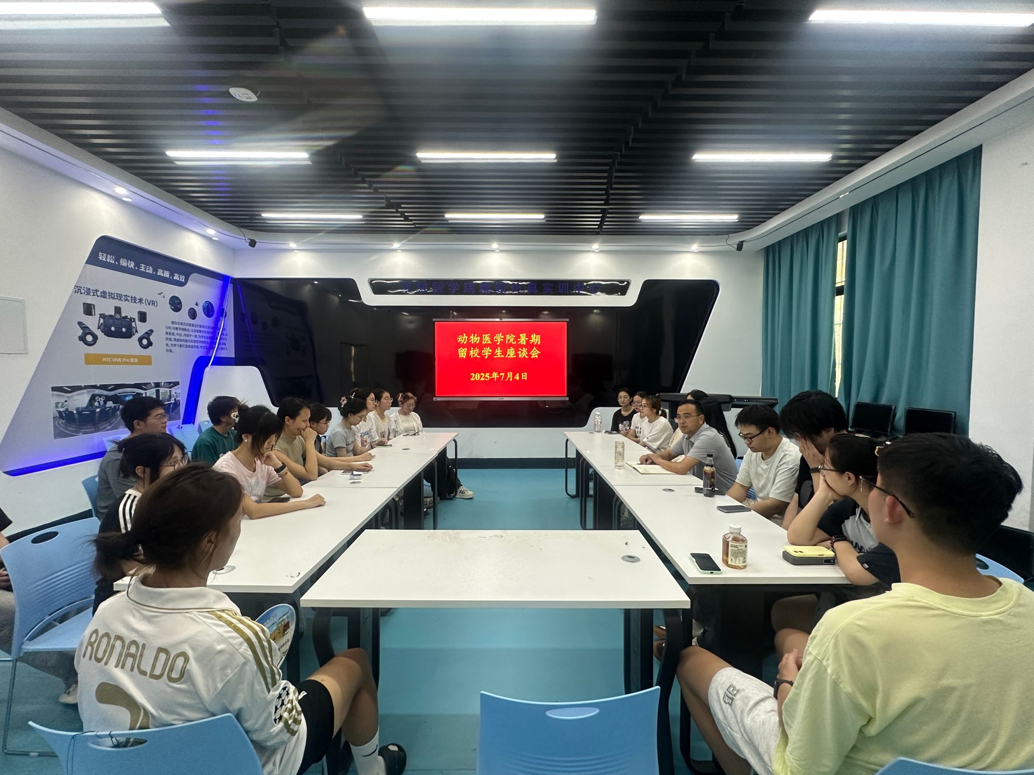 本网讯 7月4日下午,动物医学院在学院218会议室召开暑期留校学生座谈会,深入了解暑期留校学生学习生活需求,切实做好暑期安全保障和服务工作。会议由学院党委副书记张锐主持。