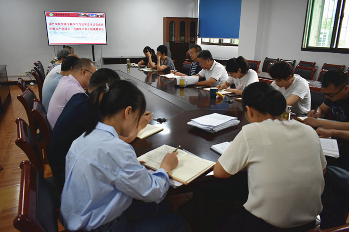 会上,朱绍友带领大家学习了习近平总书记在庆祝中国共产党成立100周年大会上的重要讲话精神,他强调要高度重视学习习近平总书记在庆祝中国共产党成立100周年大会上的重要讲话精神,要全面把握其深刻内涵和精神实质,并把它当作当前和今后一段时间理论学习的主要任务。他要求各系、各党支部要围绕“一月一主题”学习与研讨,做到及时跟进学、深入思考学、联系实际学;要深入学习贯彻习近平总书记在庆祝大会上的重要讲话精神,确保贯彻落实习近平总书记重要讲话精神落地生根,要结合学院正在开展的党史学习教育和党建“双创”工作,持续推进“我为师生办实事”、“我为三农办实事”,统筹做好学院各项工作,为学院“十四五”发展开好局、起好步。
