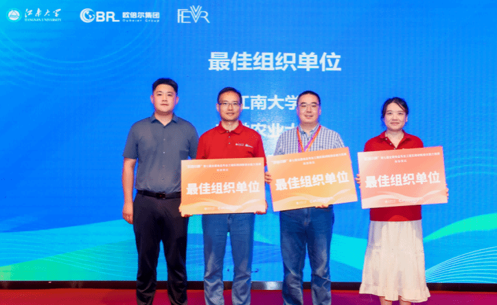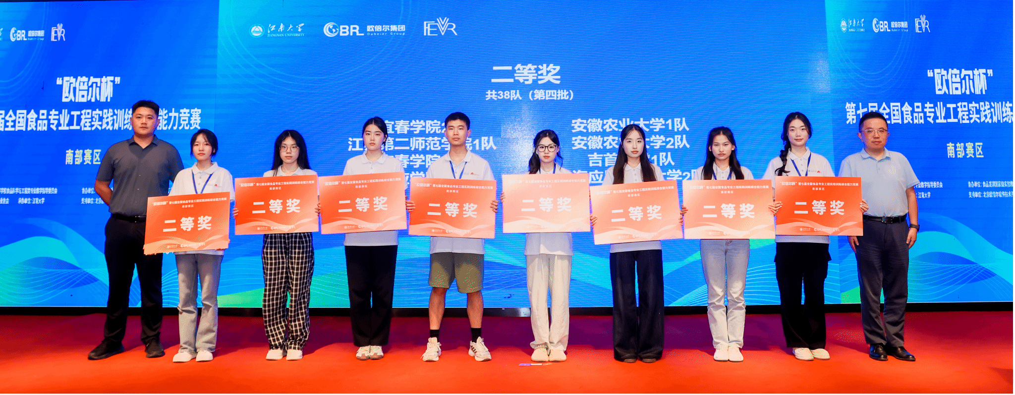 本网讯 7月5日,“欧倍尔杯”第七届全国食品专业工程实践训练综合能力竞赛(南部赛区)在江南大学顺利举办。来自南部地区34所高校共计63支队伍的189名学生踊跃参与。经过理论赛项、虚拟仿真操作赛项两轮的激烈角逐,食品与营养学院周裔彬、梁进、张强和许娜四位老师指导的安徽农业大学一队(胥梦晴、陈子欣、徐灿)和二队(宋心媛、白圣悦、卫安琪)分获大赛二等奖,同时我校获最佳组织单位奖。