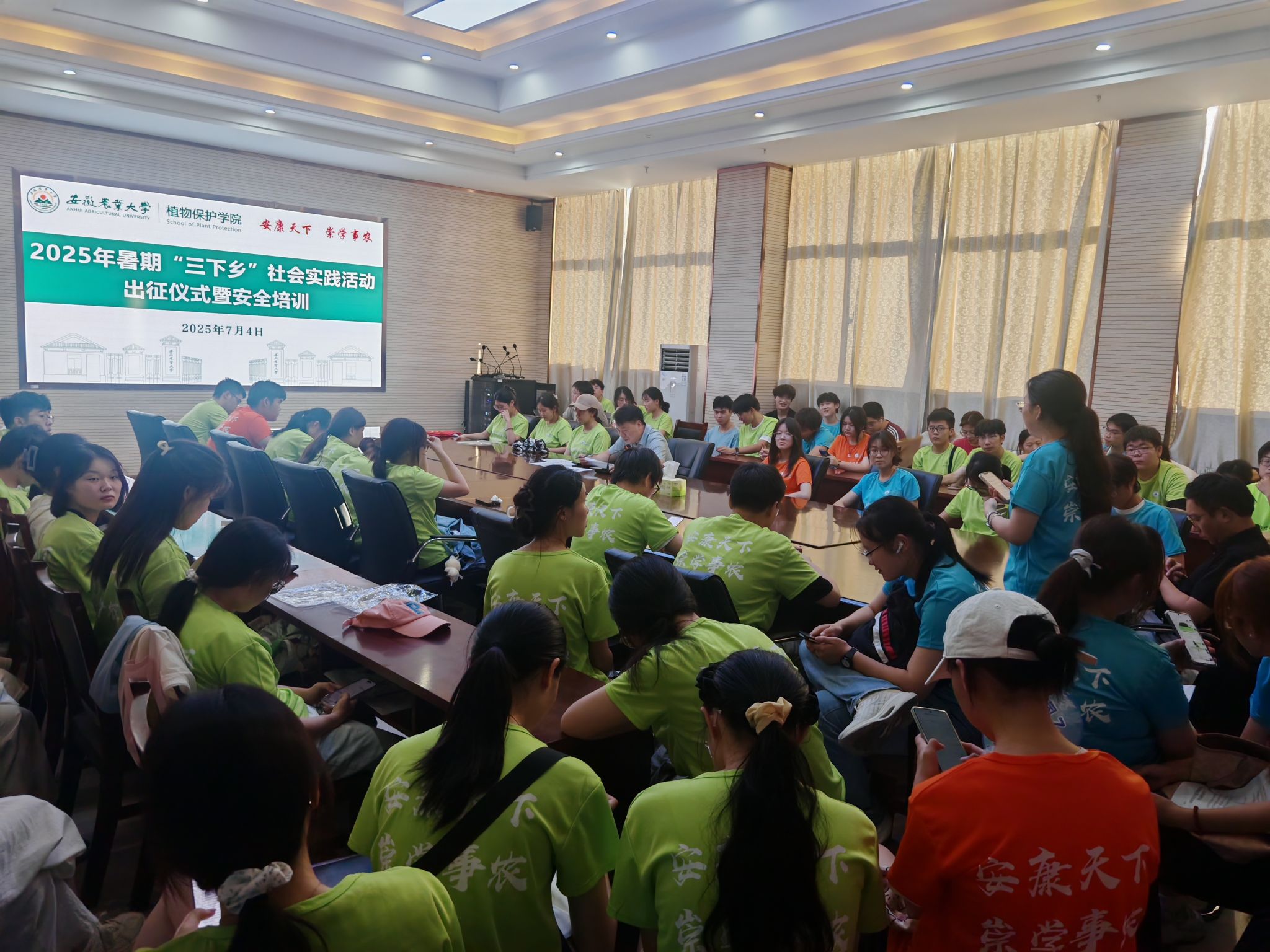 本网讯 7月4日下午,植物保护学院在中西部综合楼1213室开展2025年暑期“三下乡”社会实践活动出征仪式暨培训会,学院副院长唐庆峰、各实践团队指导老师、团学负责人和各实践团队成员参加,会议由学院党委副书记汪小强主持。
