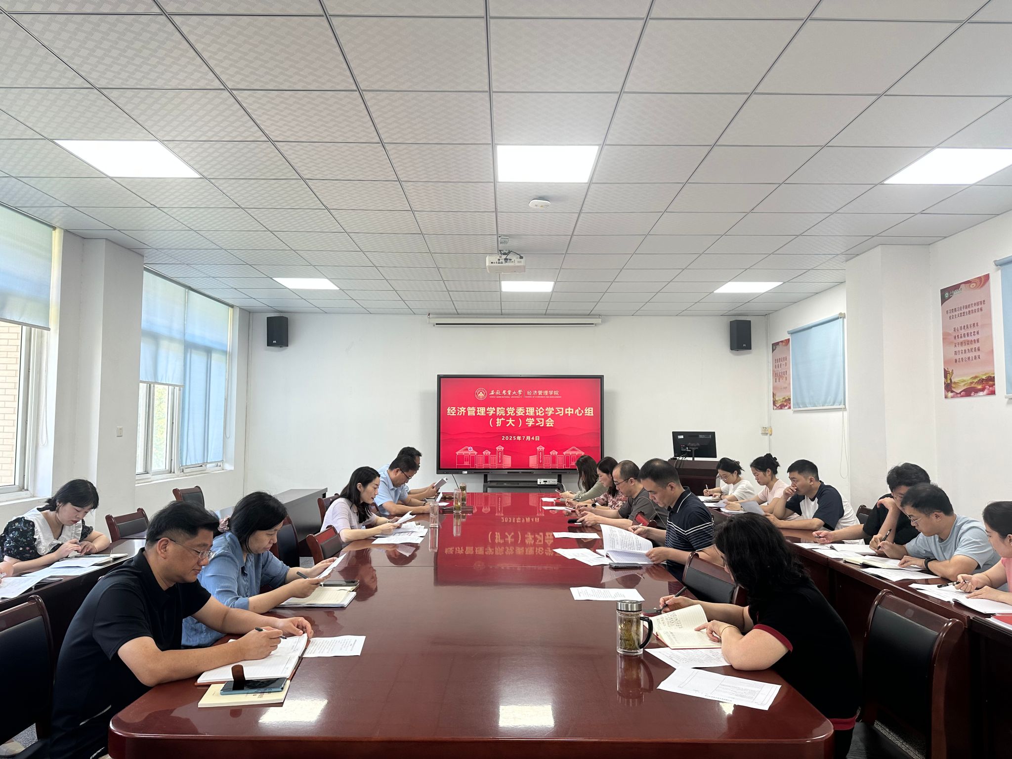 本网讯 7月4日上午,经济管理学院在经管楼304会议室召开党委理论学习中心组(扩大)学习会。学院领导班子、党委委员、党支部书记参加了本次会议。会议由学院党委书记武晓蓓主持。