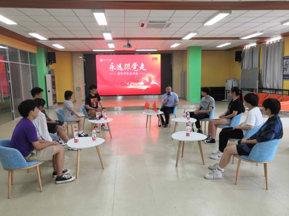 本网讯 7月9日中午,我校在欣苑学生活动中心路演大厅举办“青年学生读书会”。本次读书会以“永远跟党走”为主题,邀请全省优秀党务工作者、资源与环境学院程玉峰老师领学,校学生会10名学生代表交流读书体会,分享学习心得。