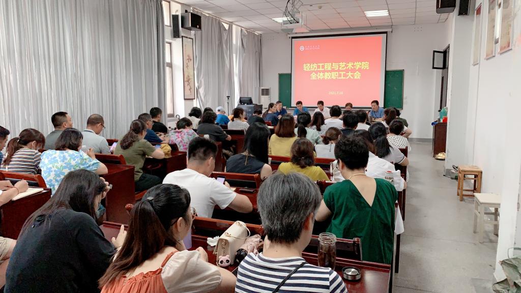 本网讯7月16日下午,轻纺工程与艺术学院全体教职工大会暨师德专题动员部署会在轻纺楼四楼会议室召开,学院全体教职工参加,学院党委书记夏成云主持。