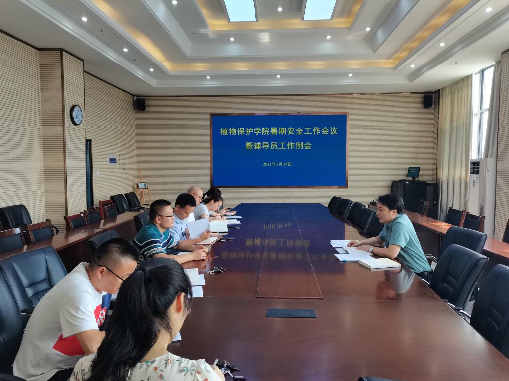 本网讯7月19日,植物保护学院围绕暑期学生安全工作,分别召开辅导员工作会议、全体留宿学生会议进行专题部署。学院党委副书记、纪委书记、副院长汪小强主持会议。