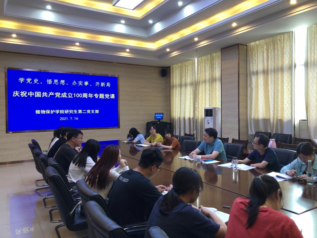 本网讯 7月16日下午,植物保护学院研究生第二党支部举办“七一”重要讲话学习研讨、党员讲述微党史、专题党课、党史知识测试等党史教育日活动。学院党委副书记、纪委书记、副院长汪小强以普通党员身份参加,并为全体党员上“七一”专题党课。