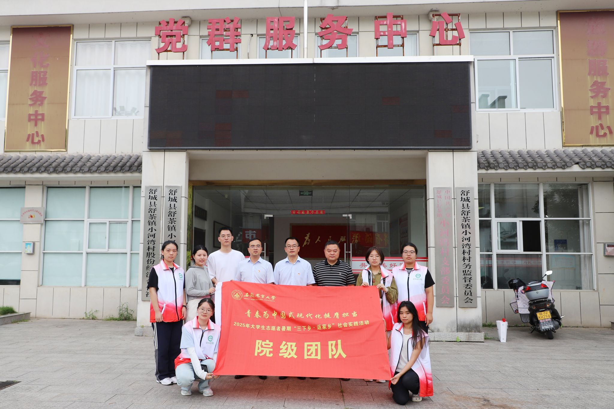 本网讯 7月14-15日,动物医学院“茶香蕴红”社会实践队在指导老师的带领下,深入六安市舒城县舒茶镇小河湾村开展“三下乡·返家乡”暑期社会实践活动。活动期间,动物医学院党委书记吴永红、副书记张锐等学院领导老师前往实践现场慰问指导,哈泰智能科技有限公司党支部书记王静等人一同参与。