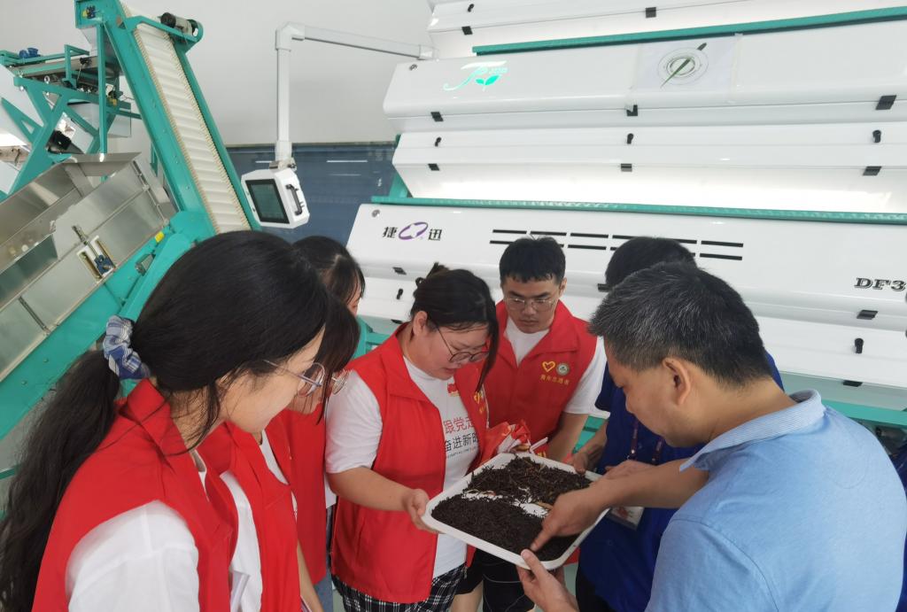 聚焦产业发展,助力乡村振兴。7月19日,实践团成员前往安徽捷迅光电技术有限公司,了解茶叶色选设备的应用技术,以期为大畈村的茶叶生产提供新思路。7月20日,实践团成员走访茶农、产业带头人和村干部,了解茶叶、高山有机香稻、天麻等的农业种植,养殖技术,农产品包装和品牌情况,调研大畈村“三变”改革、村产业合作社的运营状况以及村集体利益收入,就如何发展当地特色农产品,助力乡村振兴进行座谈交流。