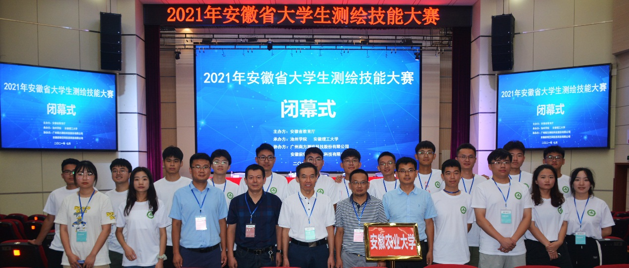 2021年安徽省大学生测绘技能大赛由安徽省教育厅主办,池州学院、安徽理工大学承办,广州南方测绘科技股份有限公司、安徽前锦空间信息科技有限公司协办。大赛在池州学院隆重举行,来自合肥工业大学、安徽大学、安徽农业大学、安徽建筑大学、安徽理工大学等省内15所本科高校的23支代表队参赛。大赛设置二等水准测量、测量程序设计和虚拟仿真数字测图三个项目,我校测绘学科遴选了16名本科生参加了全部比赛项目,斩获大赛多个奖项:18级学生汪睿、翟晨阳获“虚拟仿真数字测图”项目特等奖(指导教师:田劲松);19级学生杨迪伟、杨优获“虚拟仿真数字测图”项目二等奖(指导教师:田劲松);19级学生张珂、梁益银、王天乐、张远山获“二等水准”项目一等奖(指导教师:刘新、田劲松);19级学生柴荣滋、刘庆雨获“测绘程序设计”项目二等奖(指导教师:高祥);19级学生张梦瑶、王静怡获“测绘程序设计”项目二等奖(指导教师:高祥);安徽农业大学1队获团队一等奖(指导教师:田劲松、高祥、刘新、过家春);指导教师田劲松老师获得“优秀指导教师”奖。