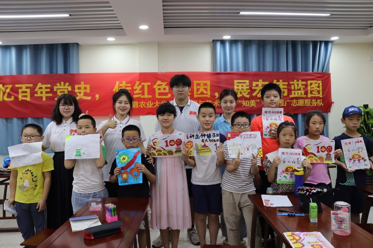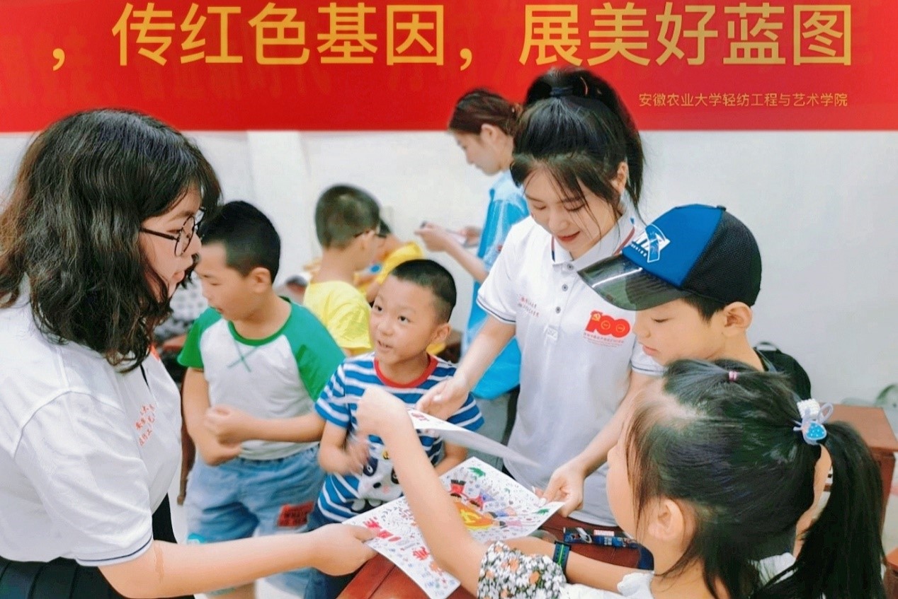 7月-8月,安徽农业大学轻纺工程与艺术学院开展“忆百年党史,绘美好未来”暑期社会实践活动,在合肥市水西门社区、龙王社区、陈村路社区、五里拐社区、蒙城县小涧镇为城市流动儿童和农村留守儿童同步进行“上好党史学习教育‘艺术课’”义务支教活动。