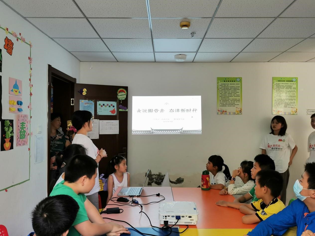 在课堂上,学院实践团同学们讲述了中国共产党的由来、老革命的故事和党徽的构成及其含义,引导小朋友们在牢记党恩,发扬革命精神,争做新时代的社会主义事业接班人。在合肥市水西门社区,社会实践团的各位同学们用提问的形式推进课程的进展,并现场教授小朋友党徽的构成与画法,用绘画的方式向小学生传达党的丰功伟绩和辉煌成就,极大的激发了小朋友们对党的热爱。
