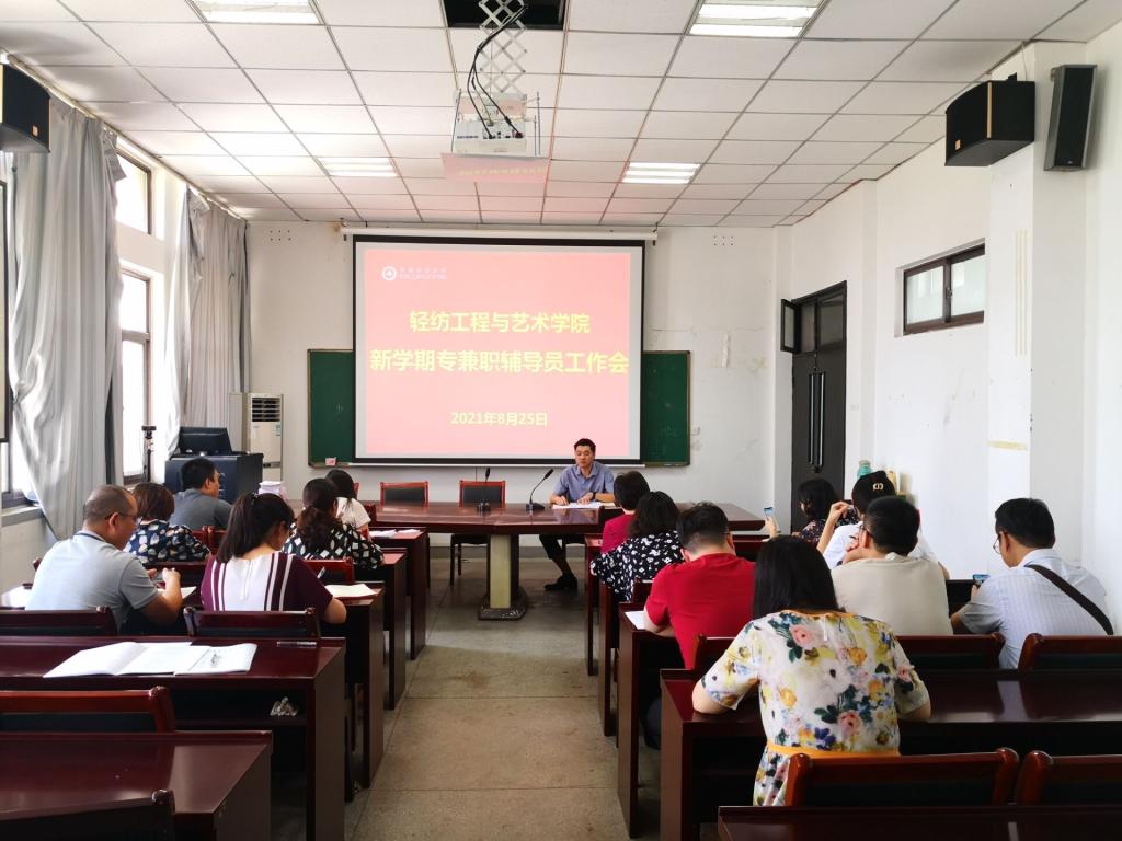 本网讯8月26日,轻纺工程与艺术学院在轻纺楼四楼会议室召开新学期专兼职辅导员例会。本次会议由院党委副书记、副院长、纪委书记宋超主持,全体专兼职辅导员参会。