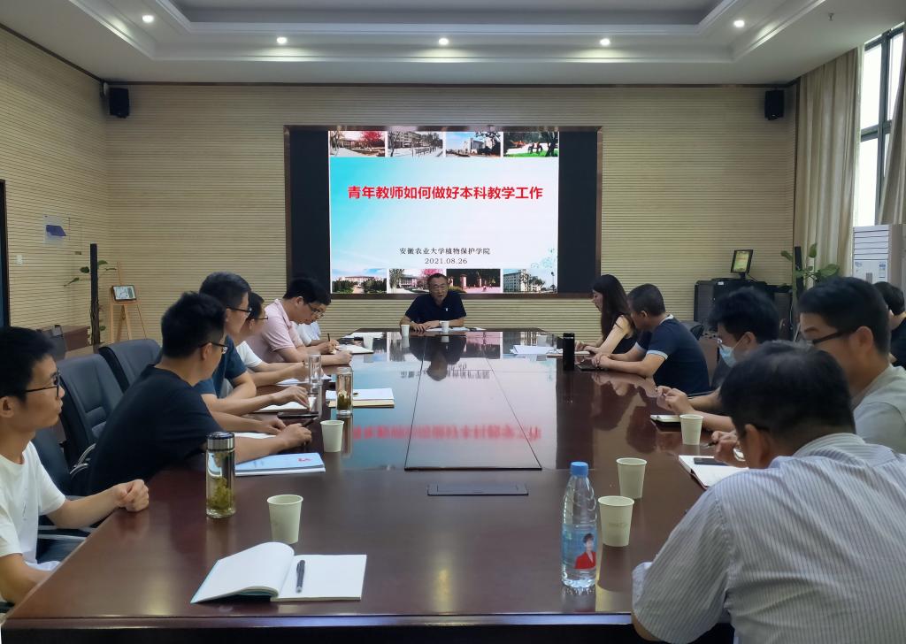本网讯8月26日,植物保护学院召开本科教学工作会议。会议邀请了全国模范教师、学校教学突出贡献奖获得者李桂亭教授做“青年教师如何做好本科教学工作”专题辅导。学院副院长唐庆峰教授,各系主任和青年教师参会。会议由唐庆峰主持。