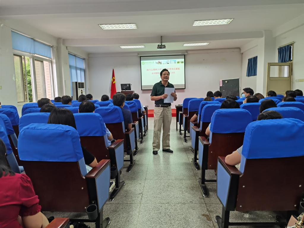 本网讯8月27日下午,经济管理学院全体教职工大会在经管楼321报告厅召开。学院党政领导、管理人员及各系部教师参会。会议由副院长刘鹏凌主持。