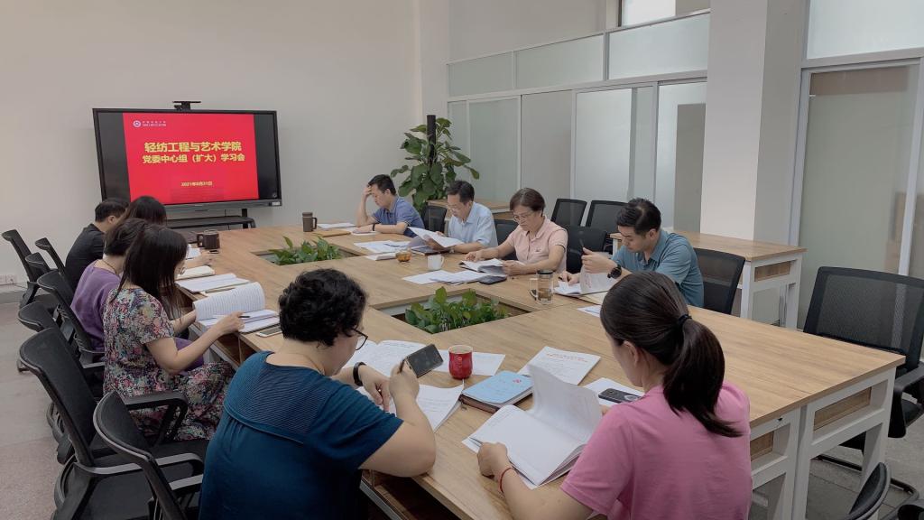 本网讯8月31日下午,轻纺工程与艺术学院在轻纺楼三楼会议室召开党委中心组(扩大)学习会。院领导班子成员、院党委中心组成员、各支部书记参会,会议由学院党委书记夏成云主持。
