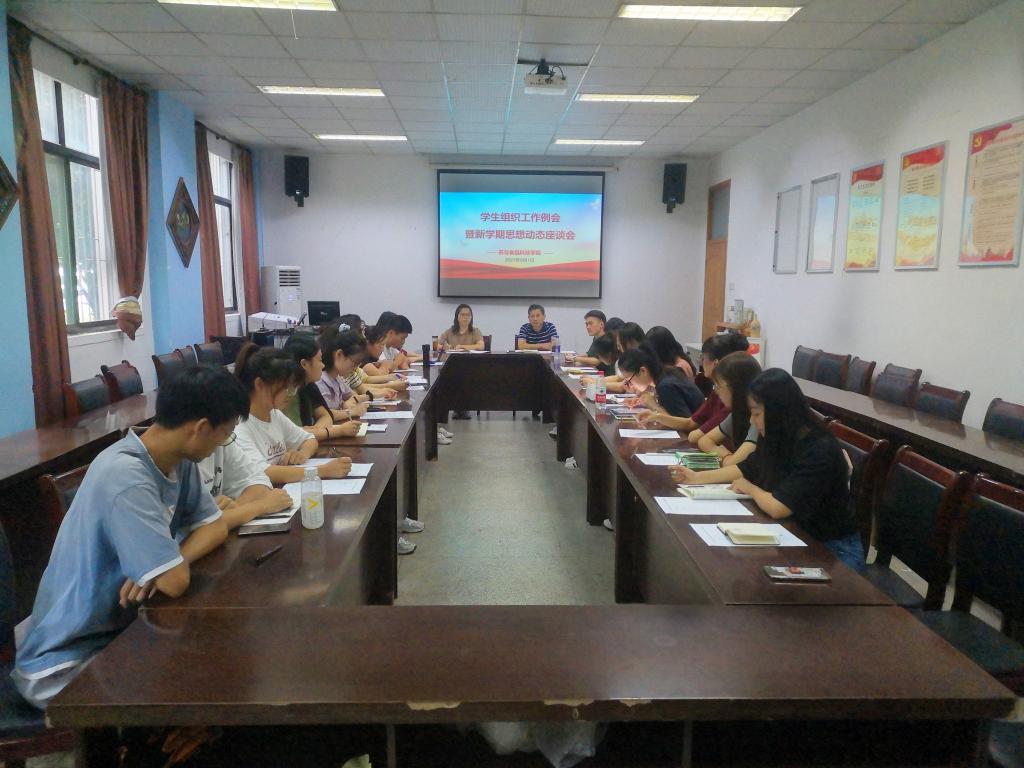 本网讯新学期伊始,为了解学生思想动态,收集对学院工作的建议,推动学生工作的开展,9月1日下午,茶与食品科技学院在茶业楼105会议室召开学生组织工作例会暨新学期思想动态座谈会。学院党委副书记、纪委书记、副院长夏业鲍,学生骨干和班级学生代表等参加会议。会议由学院团委老师主持。