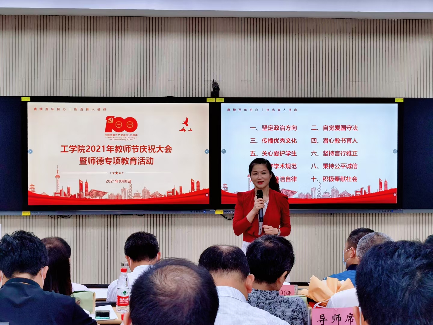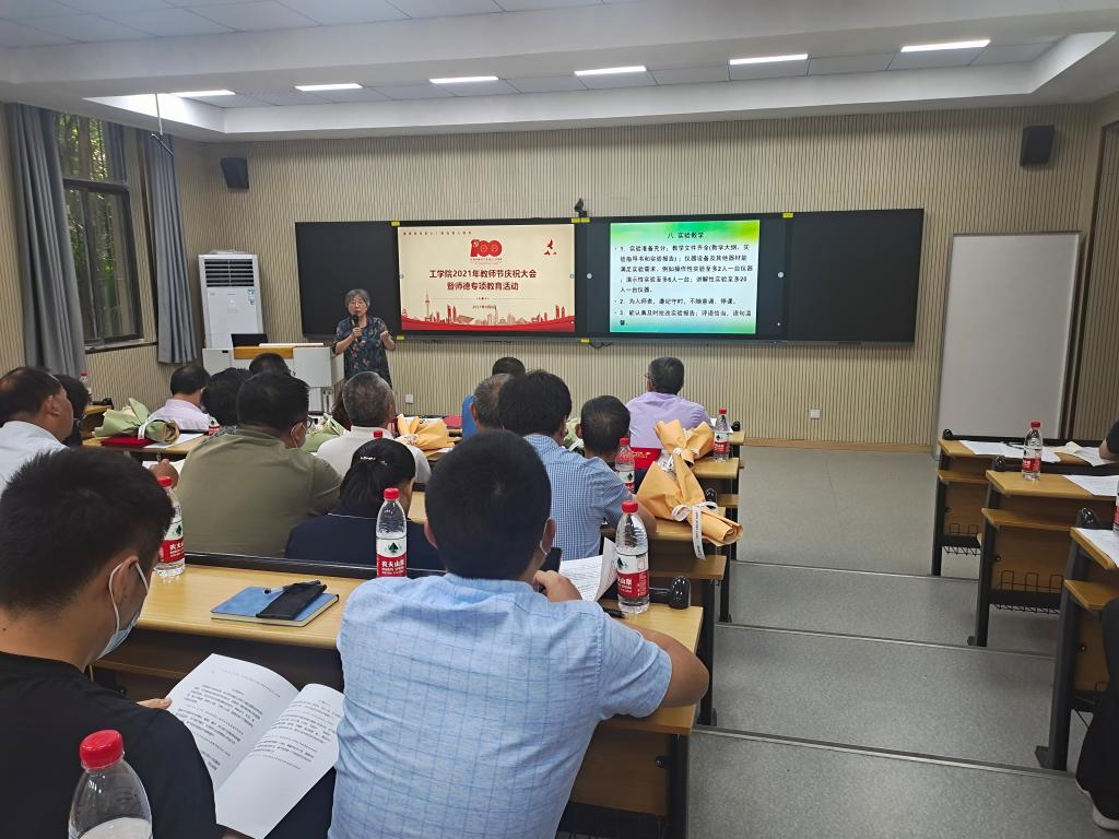 本网讯 为持续推动党史学习教育,深入开展师德专题教育活动,在第37个教师节到来之际,9月8日下午,工学院召开2021年教师节庆祝大会暨师德专题教育活动,全院在职教职工、部分退休教师和学生代表参加会议。