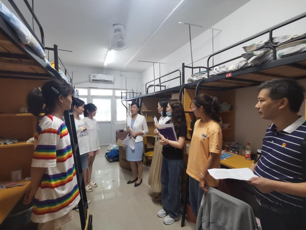 稳步推进入学教育,多措并举提升实效。学院高度重视新生入学教育工作,以强化安全教育为基础,巩固专业思想为重点,开展走访新生宿舍、主题班会、专业思想教育、新生开学典礼等系列主题教育活动,增强育人效果。9月9日下午,学院党政领导带领新生辅导员走访学生宿舍,看望慰问新生。院领导亲切的询问同学们初到大学的感受,了解学生入住需求,多次督促新生避免电信诈骗,希望同学们尽快适应大学生活,有追求、有理想、有目标、有行动,勇敢地展现大学生风采。