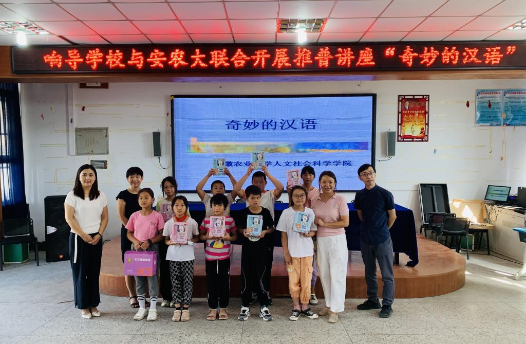 本网讯 9月14日,在第24届全国推广普通话宣传周到来之际,人文社会科学学院院长姜红一行走进肥东响导学校,与小朋友们开展了一场别开生面的推普活动。