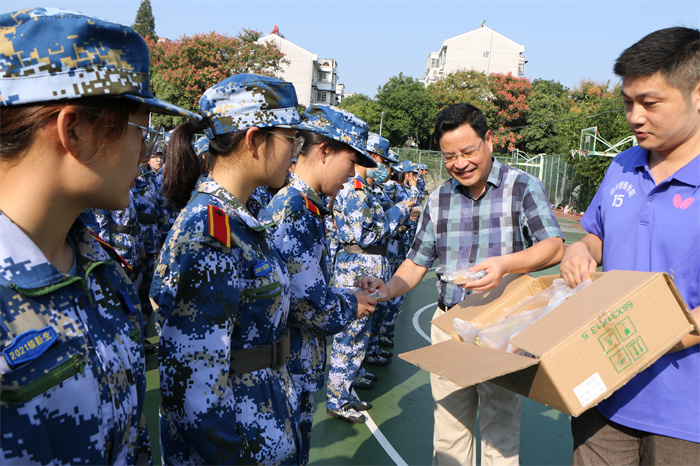 9月19日上午,在中秋佳节来临之际,经济管理学院党委书记、院长孙超,党委副书记、副院长、纪委书记吴国卿,以及2021级新生辅导员来到了学院新生军训场地,看望慰问正在训练的大一新生,并将学院领导、辅导员老师自费购买的“暖心月饼”送到了同学们的手中。孙超代表学院向同学们表达了中秋祝福,并叮嘱他们刻苦训练,快乐生活。