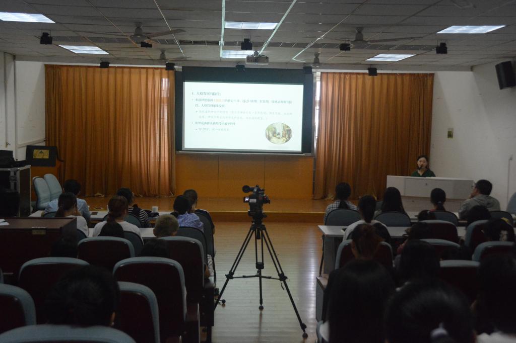 本网讯9月25日下午,人文社会科学学院在学院602报告厅开启应用心理学专业劳动服务技能系列讲座暨校友报告会。我校校友、合肥市第四人民医院(安徽省精神卫生中心)主治医师郑诚做“在心理咨询中与不同人格对话”报告。学院副书记吴永红、副院长滕瀚参加了活动,报告由心理学系主任王东老师主持,心理学系和实验中心老师,学院约150多名学生聆听了报告。
