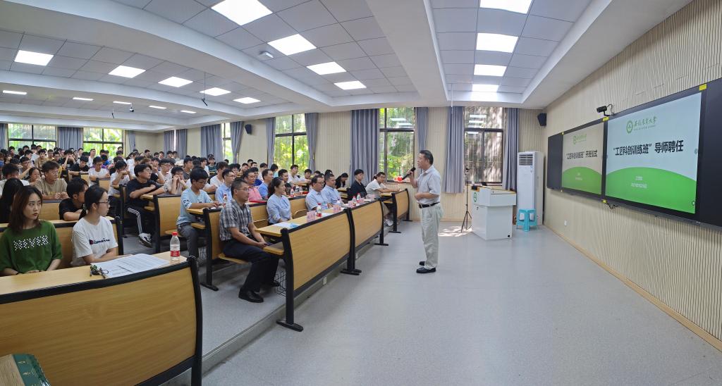 本网讯9月26日中午,工学院“工匠科创训练班”开班式暨赛事宣讲活动在三教101教室举行。校创新创业学院常务副院长徐斌、学院党政领导、科创训练常驻指导老师,“工匠科创训练班”全体同学参加开班仪式。