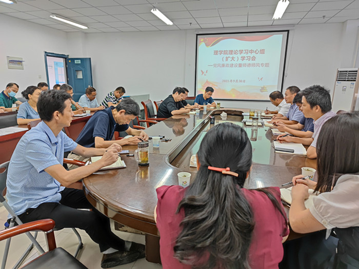 本网讯9月30日下午,理学院党委理论学习中心组(扩大)学习会在中西部综合楼641会议室召开,学院党政领导、党委委员、系部主任、支部书记参会,会议由院党委书记王冬平主持。