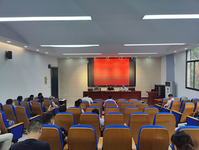 本网讯9月29日下午,园艺学院在院报告厅245召开全院教职工大会就2021年国庆期间学院安全暨疫情防控工作进行重点部署和落实,同时开展2022年度国家自然基金申报动员。学院党政领导、全体教职工参加了会议。会议由学院党委书记朱绍友主持。
