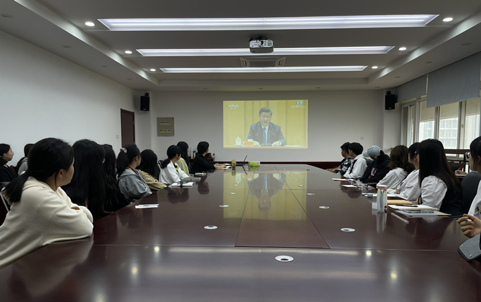本网讯10月9日上午,外国语学院组织师生在外语楼506室观看“纪念辛亥革命110周年大会”现场直播。党委副书记姬惠惠及部分学生代表参加。