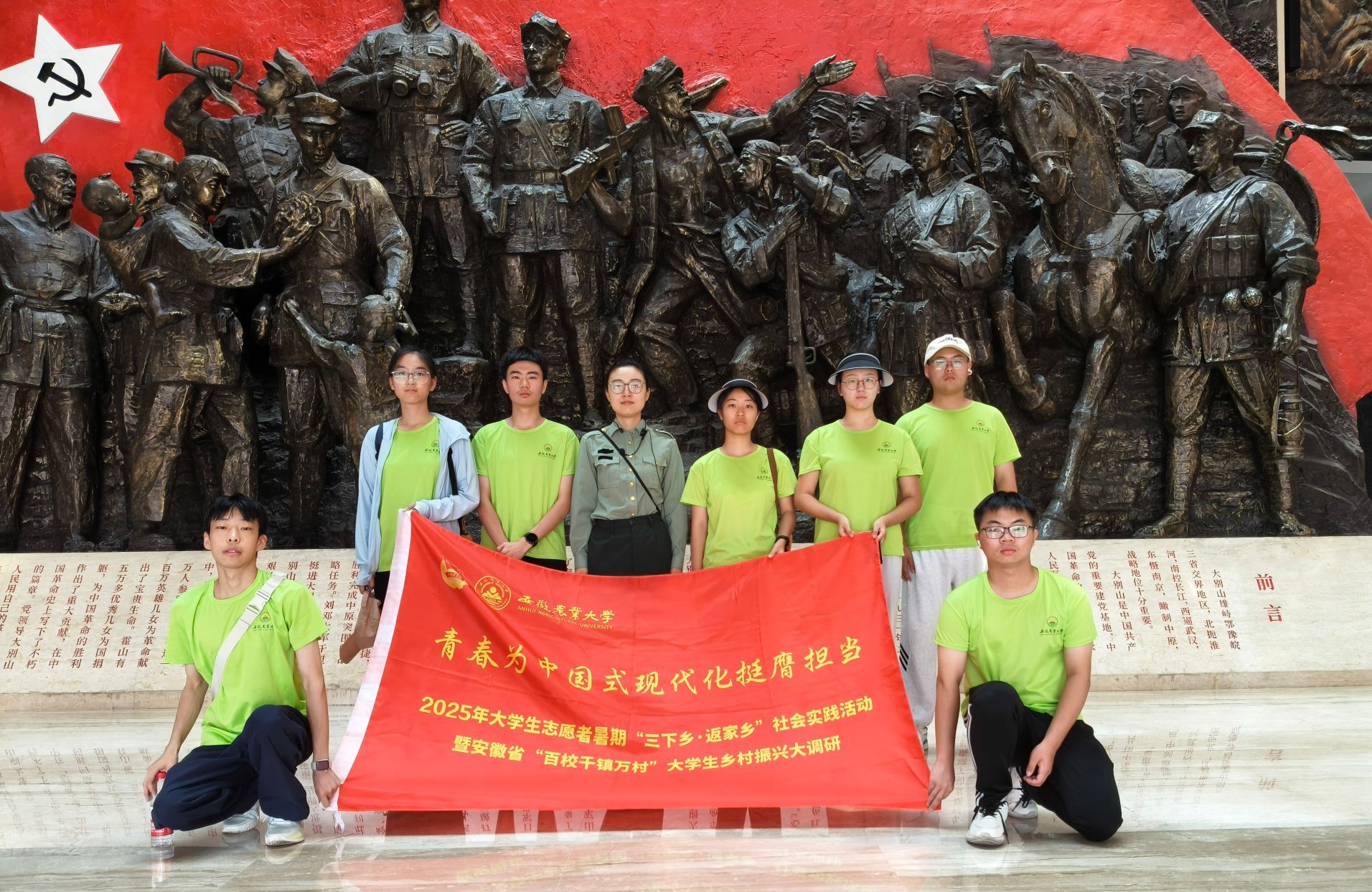 实践队前往当地的革命红色纪念馆、烈士陵园。在珍贵的文物与泛黄的照片前,赴广德英烈山纪念馆的实践团队长徐瑞深受触动:“看到先辈们在如此艰苦条件下仍坚守信仰,我们更应珍惜当下求学的宝贵时光,发扬自找苦吃的精神,勇担强农兴农的使命。”师生们聆听讲解员讲述苏家埠战役纪念馆中鄂豫皖苏区反“围剿”中的战例故事、广德市柏垫镇“40名航空科技精英”、霍山县“六霍起义”和红军烈士墓园发生的生动历史。实践团成员在无名烈士墓前庄严献花、寄托哀思。