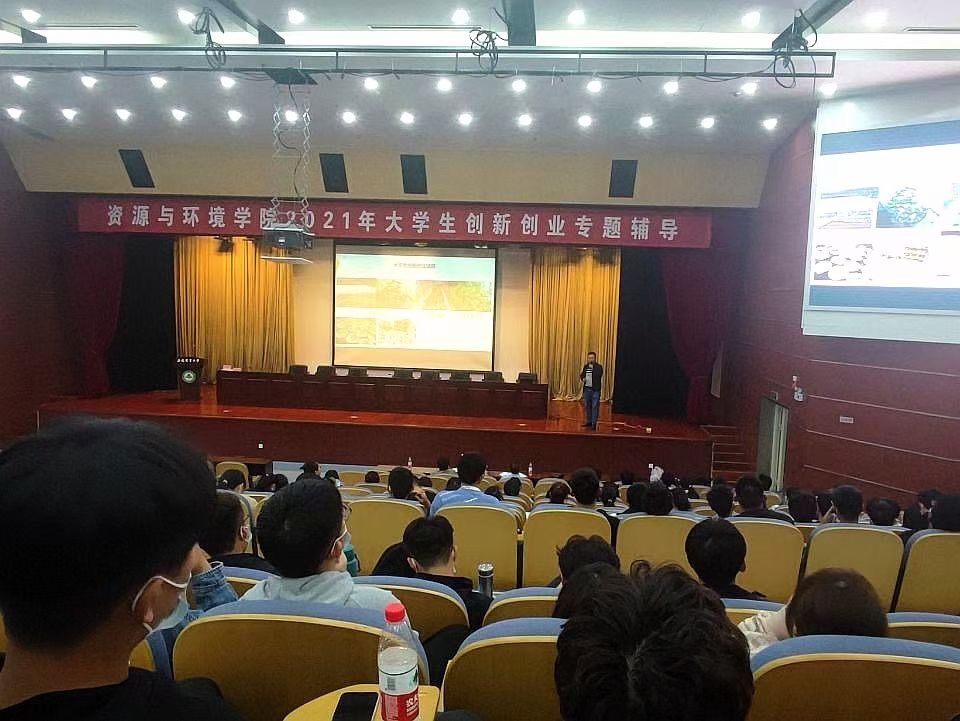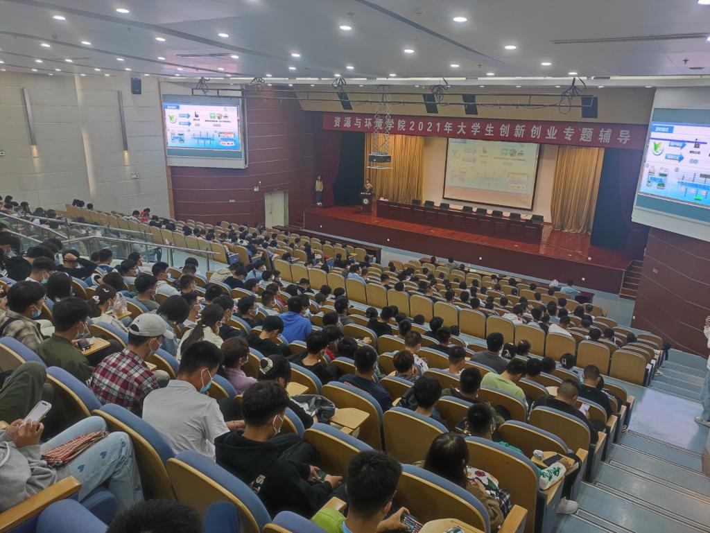 本网讯为服务国家创新驱动发展战略,深化创新创业教育改革,促进大学生全面发展,资源与环境学院于10月9日晚在图书馆第一报告厅举办大学生创新创业专题辅导报告,副院长张震出席报告会,国家二级创业咨询师丁朝阳作专题辅导报告,第七届中国国际“互联网+”大学生创新创业大赛总决赛参赛团队成员进行现场展示,学院辅导员老师、近400名学生听取了报告,报告会由学院党委副书记、纪委书记、副院长姚洪章主持。