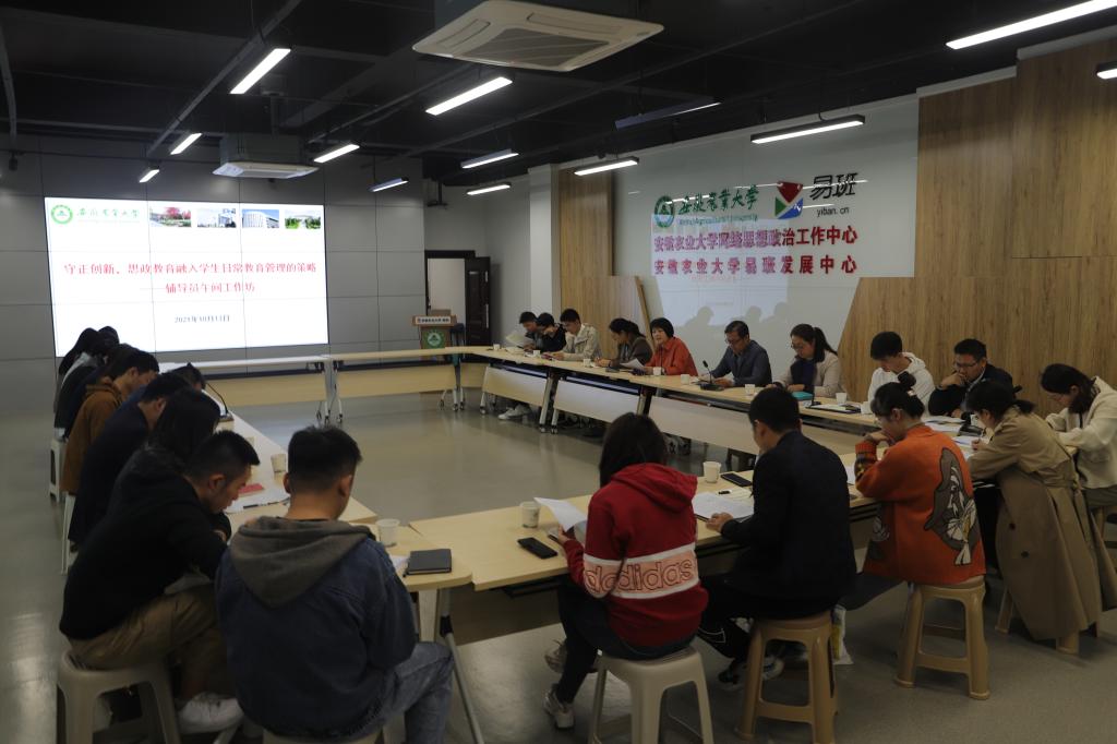 会上,周涛副处长带领大家集中学习了习近平总书记在中央党校(国家行政学院)中青年干部培训班开班式上的重要讲话精神和《关于新时代加强和改进思想政治工作的意见》。生命科学学院辅导员汪健和信息与计算机学院辅导员邓菁菁分别交流了疫情防控期间日常健康打卡工作和学生奖助学金评审工作,学生处卢伟和陈玲玲老师分别就日常健康打卡系统和学生国家奖助学金评审系统操作进行了说明,参与人员还就近期工作中遇到的疑惑进行了充分地交流讨论。(通讯员:杨金丹)