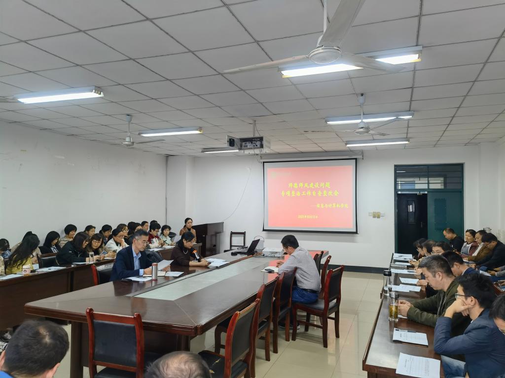 本网讯根据师德师风建设相关要求,10月14日下午,信息与计算机学院在经技楼406召开师德师风建设问题自查整改会。学院党政领导,全体教职工参加会议。本次会议由院党委书记葛红主持。