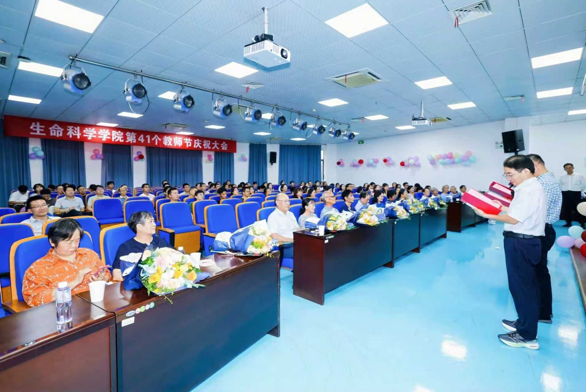 本网讯 9月9日下午,生命科学学院庆祝第41个教师节大会在科技楼B438报告厅举行。学院党政领导、全体教职员工、离退休教师代表以及学生代表齐聚一堂,共庆节日。