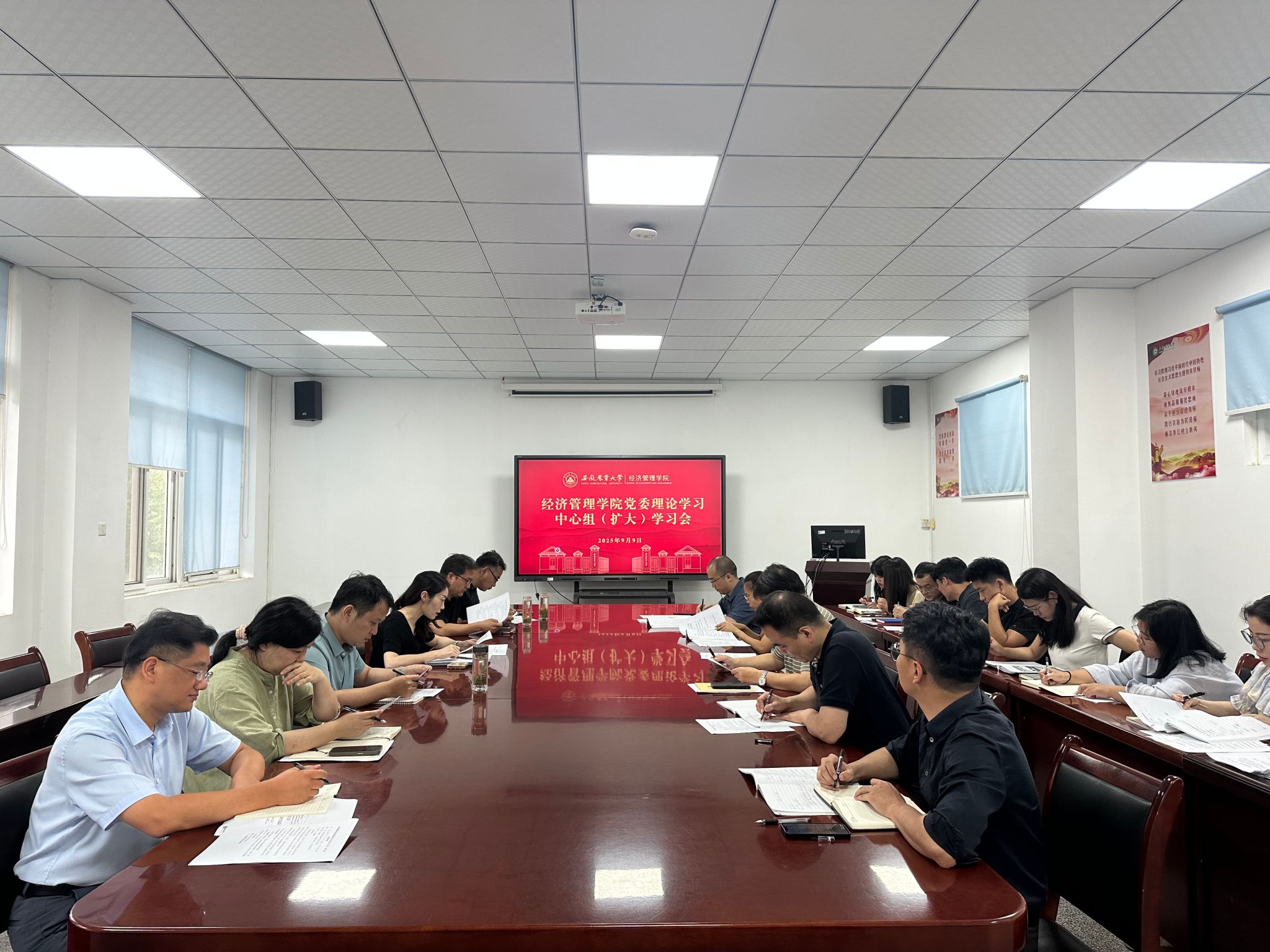 本网讯 9月9日下午,经济管理学院在经管楼304会议室召开党委理论学习中心组(扩大)学习会。学院领导班子、党委委员、党支部书记参加了本次会议。会议由学院党委书记武晓蓓主持。
