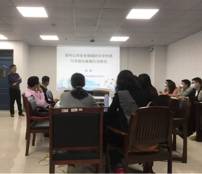 张奎教授从“面向公共安全领域的化学传感与可视化检测方法研究”深入浅出介绍了痕量、快速检测的传感分析方法和在公共安全领域的应用。报告期间,张奎教授和在座的师生就公共安全可视化检测方法的实验细节进行了讨论和交流。