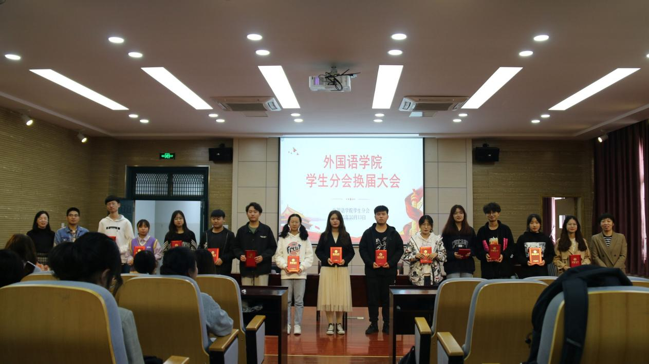 本网讯 为进一步加强学院学生骨干队伍建设,充分发挥学生骨干“自我教育、自我管理、自我服务、自我监督”的作用。10月13日,外国语学院在外语楼502报告厅举行第十八届学生分会换届大会。院党委副书记姬惠惠、院团委老师葛德智、殷霞、第十七届学生分会学生骨干、第十八届学生分会全体成员出席本次大会。大会由院团委负责老师殷霞主持。