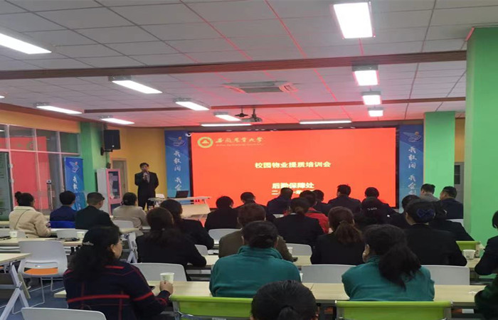 本网讯为适应学校教学、科研以及师生等不断增长的服务需求,不断建设优质高效后勤服务保障体系。10月21日下午,后勤保障处在大学生创客空间路演大厅举办校园物业提质服务专题培训会。后勤保障处副处长史青松,物业管理服务中心、学生公寓管理中心相关工作人员,各物业公司经理、管理人员和员工等40余人参会。培训会由后勤保障处副处长郭晓东主持。