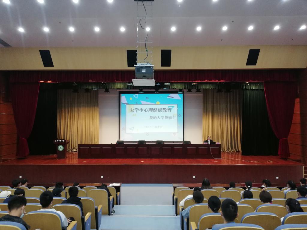本网讯为进一步帮助2021级新生尽快适应大学生活,10月27日下午,我院邀请校心理健康教育与咨询中心兼职心理咨询师钟晨老师为2021级新生作《大学生心理健康教育--我的大学我做主》讲座,针对大一新生可能出现的心理困扰进行分析和疏导。2021级生物科学类、生物制药、应用生物科学专业共310余名同学参加并聆听了讲座。