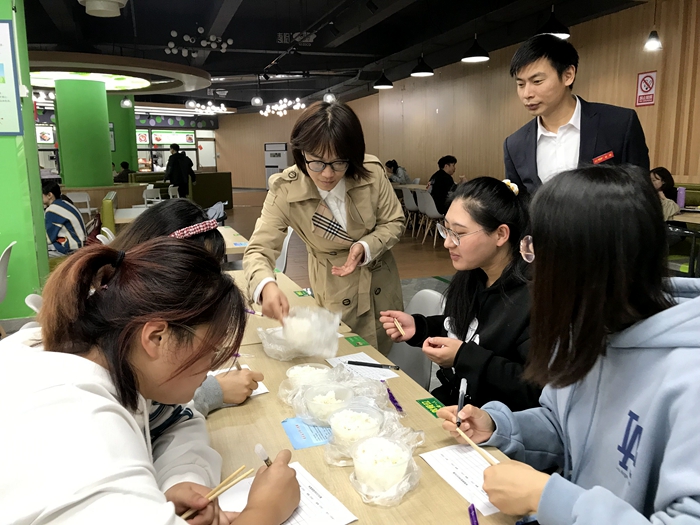 本网讯为准确掌握校园学生食堂米饭质量情况,更好提升品质,服务学生。10月27日中餐,后勤保障处饮食服务中心邀请茶与食品科技学院2019级食品质量与安全专业的本科生对6家学生食堂的午餐米饭进行了取样和感官审评。审评活动在东苑食堂现场开展。