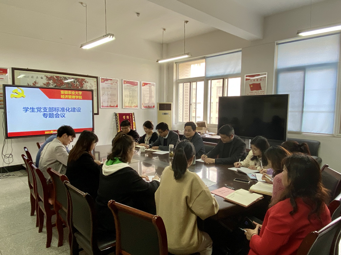本网讯为进一步推进落实学生党支部标准化建设,提升学院党建工作质量,10月27日下午,经济管理学院在经管楼302会议室召开学生党支部标准化建设专题会议。院党委书记、院长孙超,各学生党支部书记、副书记参加了会议。会议由院党委副书记、纪委书记、副院长吴国卿主持。