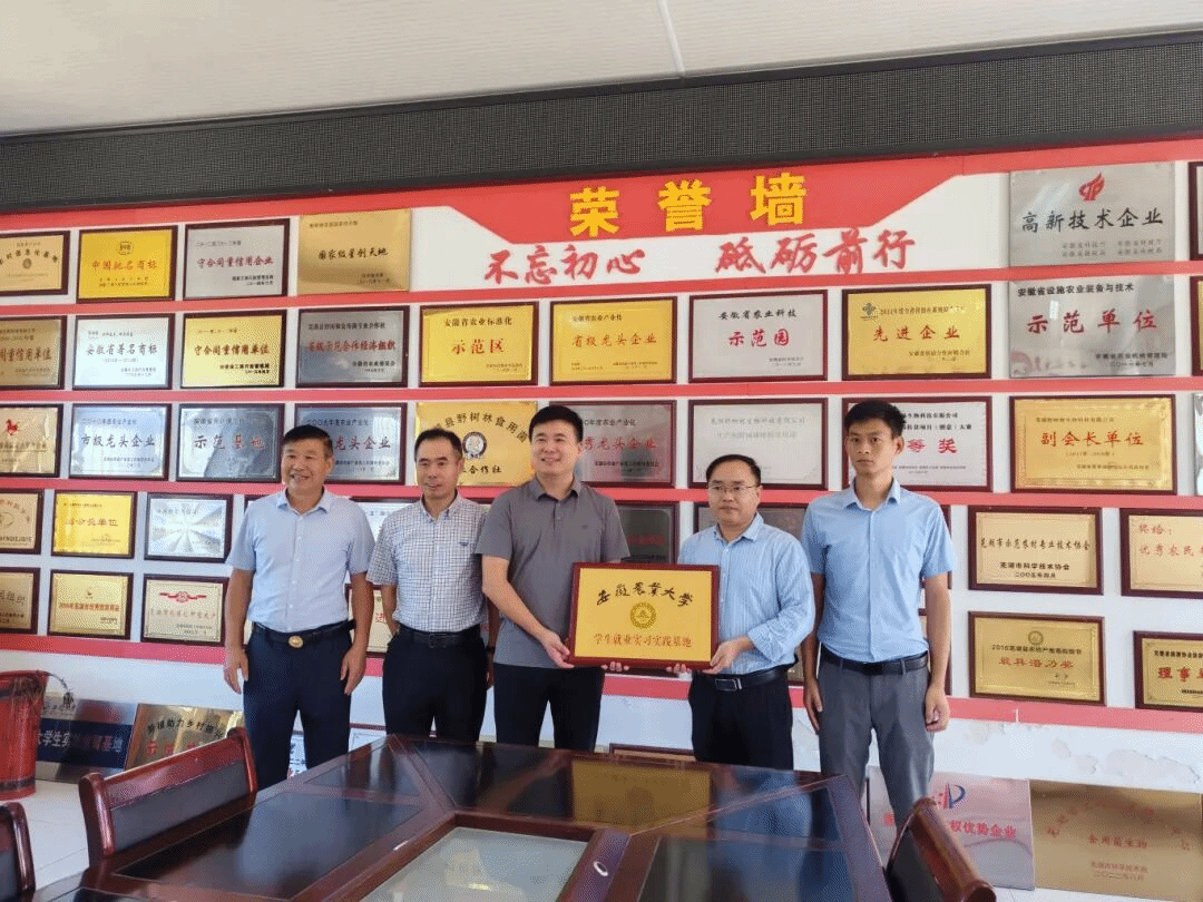 本网讯 9月22日,生命科学学院副院长张应烙、何兵一行赴芜湖市野树林生物科技有限公司、芜湖新达园林绿化集团有限公司,开展访企拓岗促就业专项行动并看望慰问在企校友,同时举行安徽农业大学学生就业实习实践基地授牌。野树林公司董事长许忠、总经理许腾龙,新达公司董事长晏继斌等代表企业热情接待并参与交流。