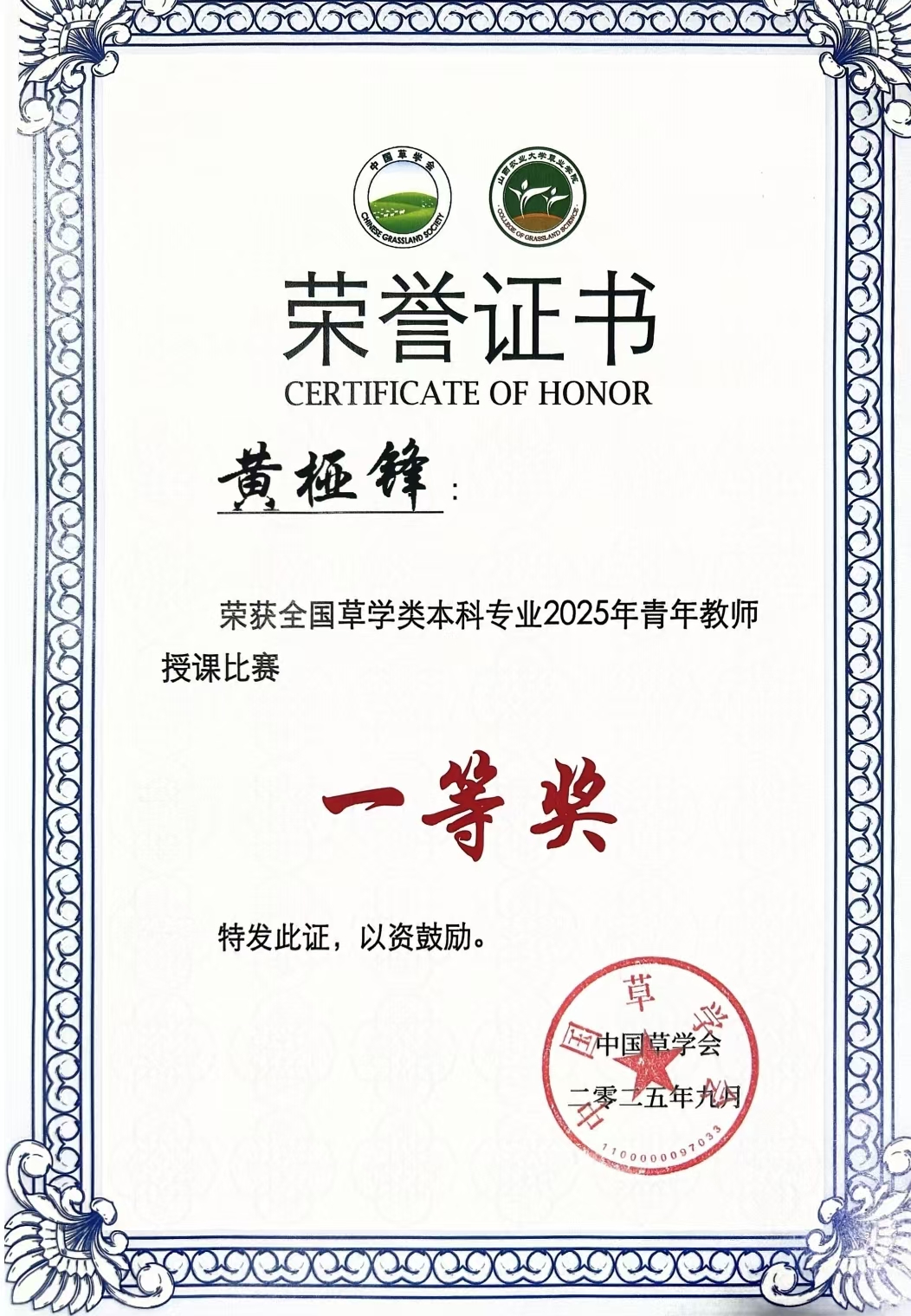 本网讯 9月19日至21日,由中国草学会主办,山西农业大学、中国草学会教育专业委员会联合承办的全国草学类本科专业2025年青年教师授课比赛,在山西太谷隆重拉开帷幕。动物科技学院青年教师黄桠锋荣获全国草学类本科专业2025年青年教师授课比赛一等奖。