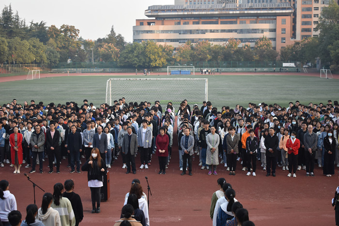 本网讯11月1日早七点,园艺学院在第一运动场举办升国旗活动。校党委武装部、学工部部长姚莉、副部长刘柳,学院党政领导班子、支部书记、教师代表、专兼职辅导员,全体本科生、研究生共计1000余人参加活动。