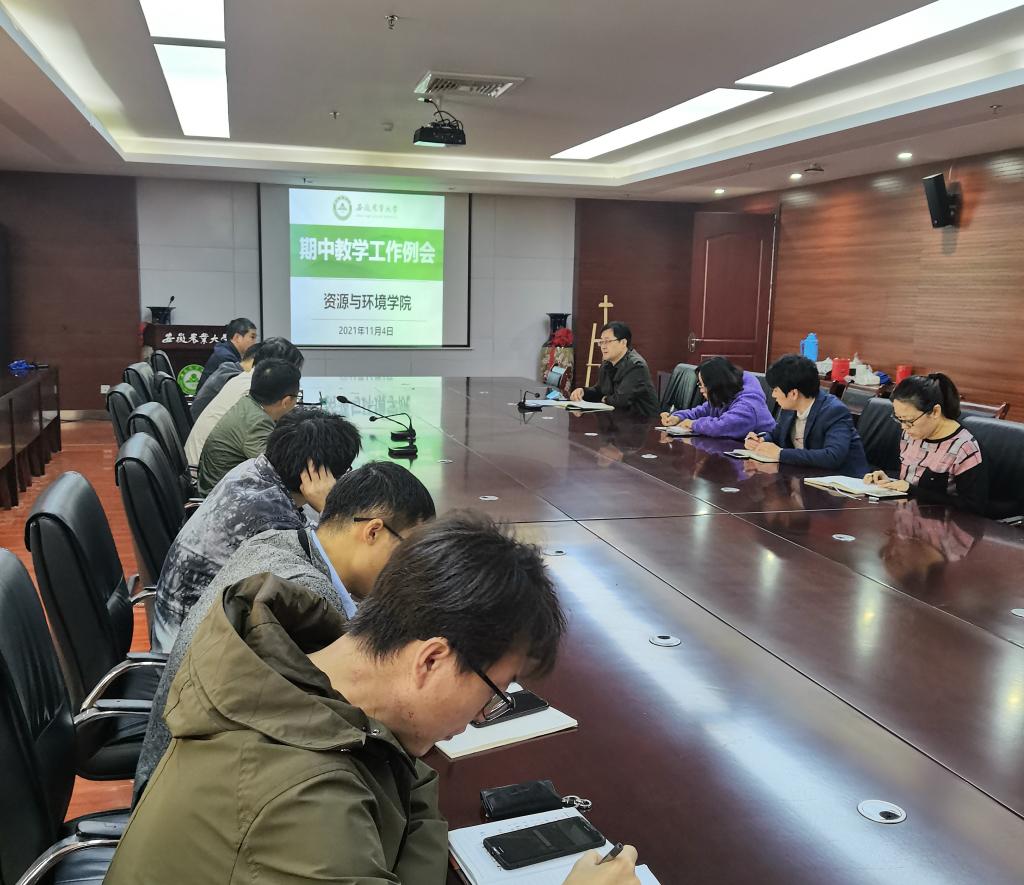 本网讯 11月4日,资源与环境学院在中西部大楼510室召开期中教学工作例会。学院各系部主任、副主任及专业负责人、教学秘书参加会议,会议由副院长张震主持。