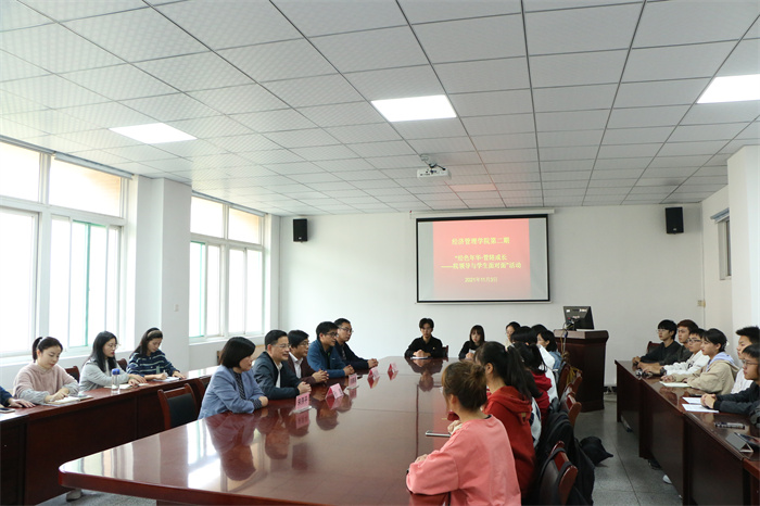 本网讯 为深入学习贯彻习近平总书记在党史学习教育动员大会上的重要讲话精神,推进“学党史、强信念、跟党走”主题教育,全面落实“我为师生办实事”实践活动的具体要求,及时收集、听取、解决广大青年大学生的建议与诉求,11月3日下午,我院第二期“经色年华•管陪成长——院领导与学生面对面”活动在304会议室举办。学院党委书记、院长孙超,党委副书记、纪委书记、副院长吴国卿,副院长刘鹏凌、田涛、宋燕平与2021级的20名学生干部代表亲切交流座谈。学院团委负责人、专职辅导员老师参加了活动。