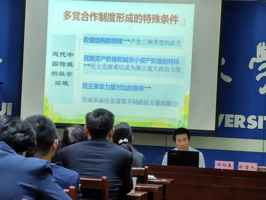本网讯为认真贯彻落实全国、全省统战工作会议精神和近期召开的全省无党派人士和党外知识分子工作座谈会会议精神,进一步做好我校新形势下培养选拔党外优秀人才工作,努力建设一支高素质的党外干部队伍。11月4日,党委统战部邀请中共安徽省委统战部无党派人士和党外知识分子工作处处长郑向春同志来校作了《坚持多党合作 加强组织建设》的专题辅导报告会。会议由党委统战部常务副部长崔云主持,学校各民主党派、知联会和侨联负责人、学校无党派代表人士以及优秀党外知识分子参加了会议。